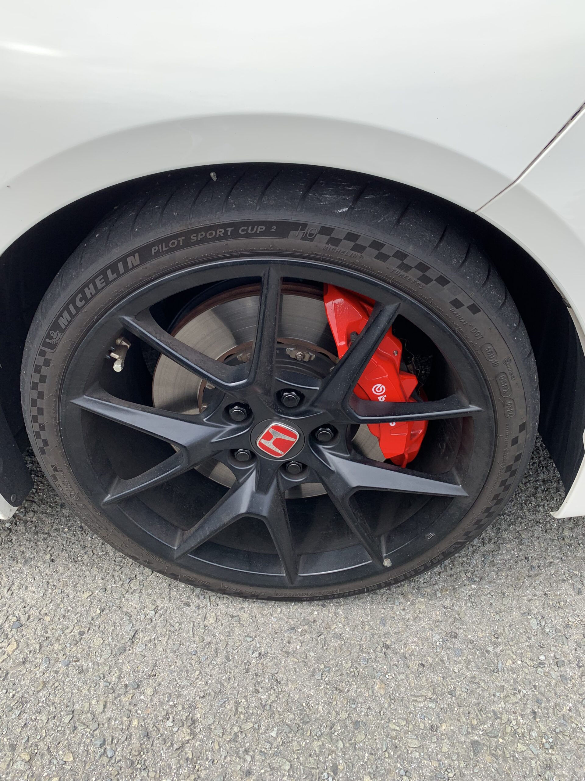 納車して半年後のサーキット走行で純正タイヤのトレッドが折れたので、今後の走行を考えて高剛性タイヤへ交換しました。